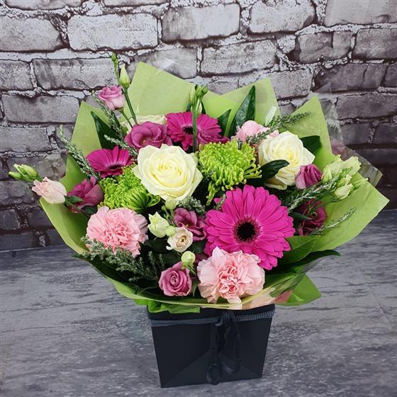 A cheerful Christmas arrangement filled with bright seasonal colours, soft winter whites and fresh festive greens. Designed with a joyful holiday style, perfect for bringing warmth and celebration to the season.